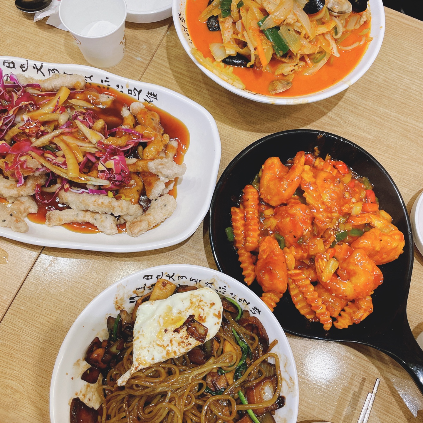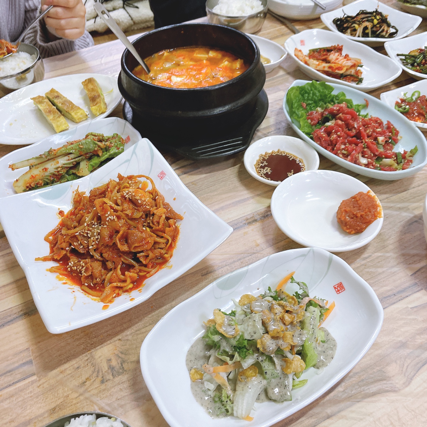 제육볶음, 육회, 중국음식, 낙지 탕탕이, 호롱이, 볶음, 그리고 미처 사진에 담지 못했던 삼겹살, 목포 특산품(?) 각종 바게트까지..
