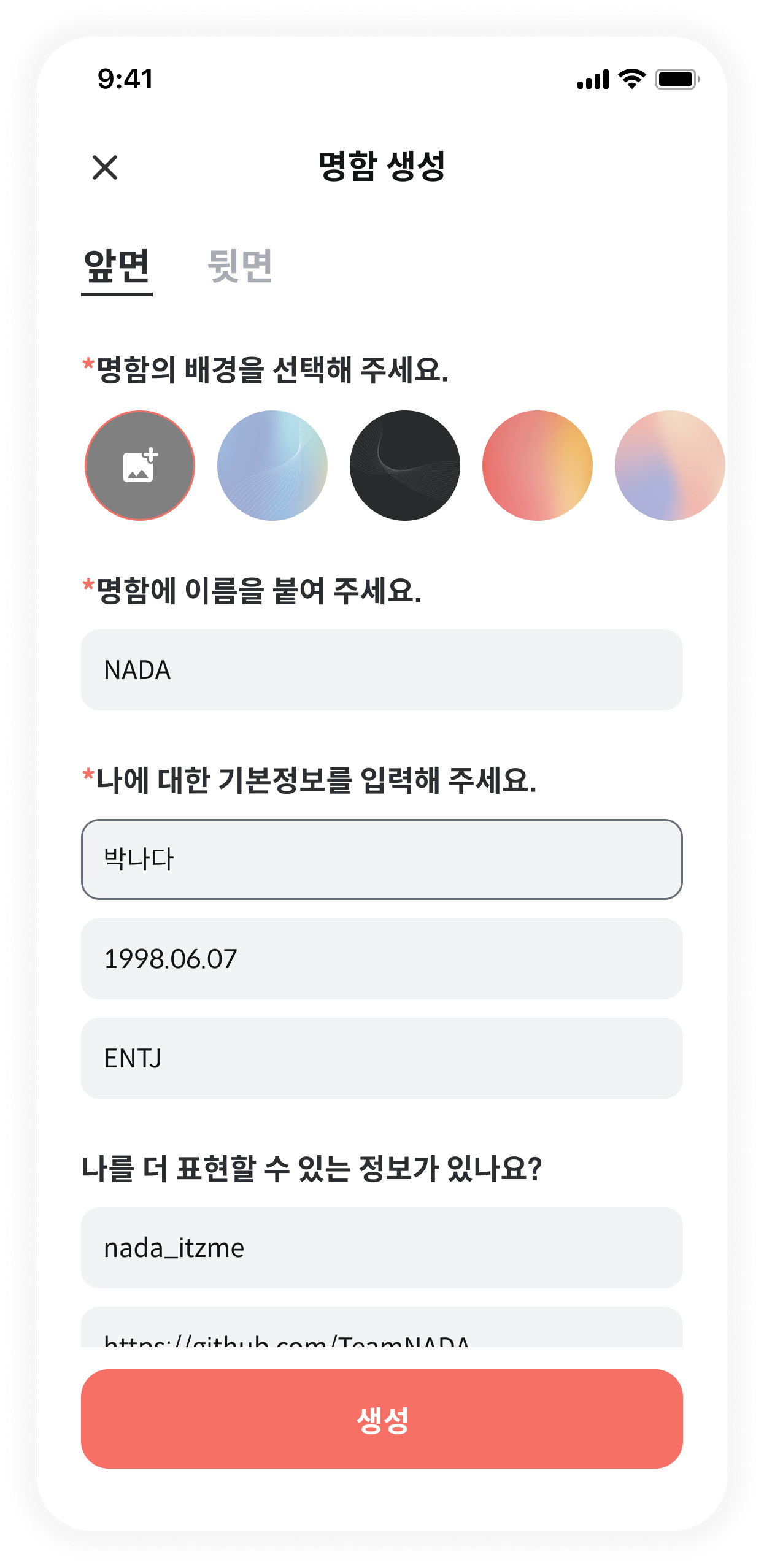 [iOS] 가장 간편한 자기소개, '나를 다' 담은 명함 서비스, <나다 NADA>