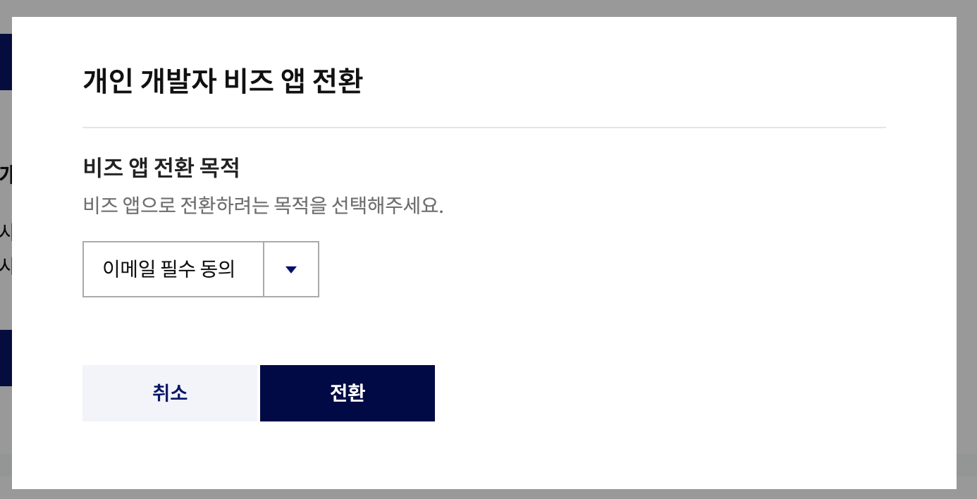 결론부터 말하자면, 사업자 등록번호가 없는 앱의 경우에도 비즈 앱 전환이 가능하다.