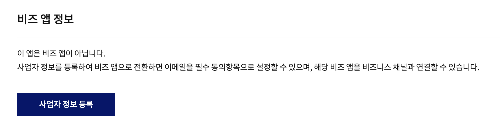 내 앱은 사업자 등록을 진행하지 않았는데, 비즈 앱으로 어떻게 전환할 수 있을까?