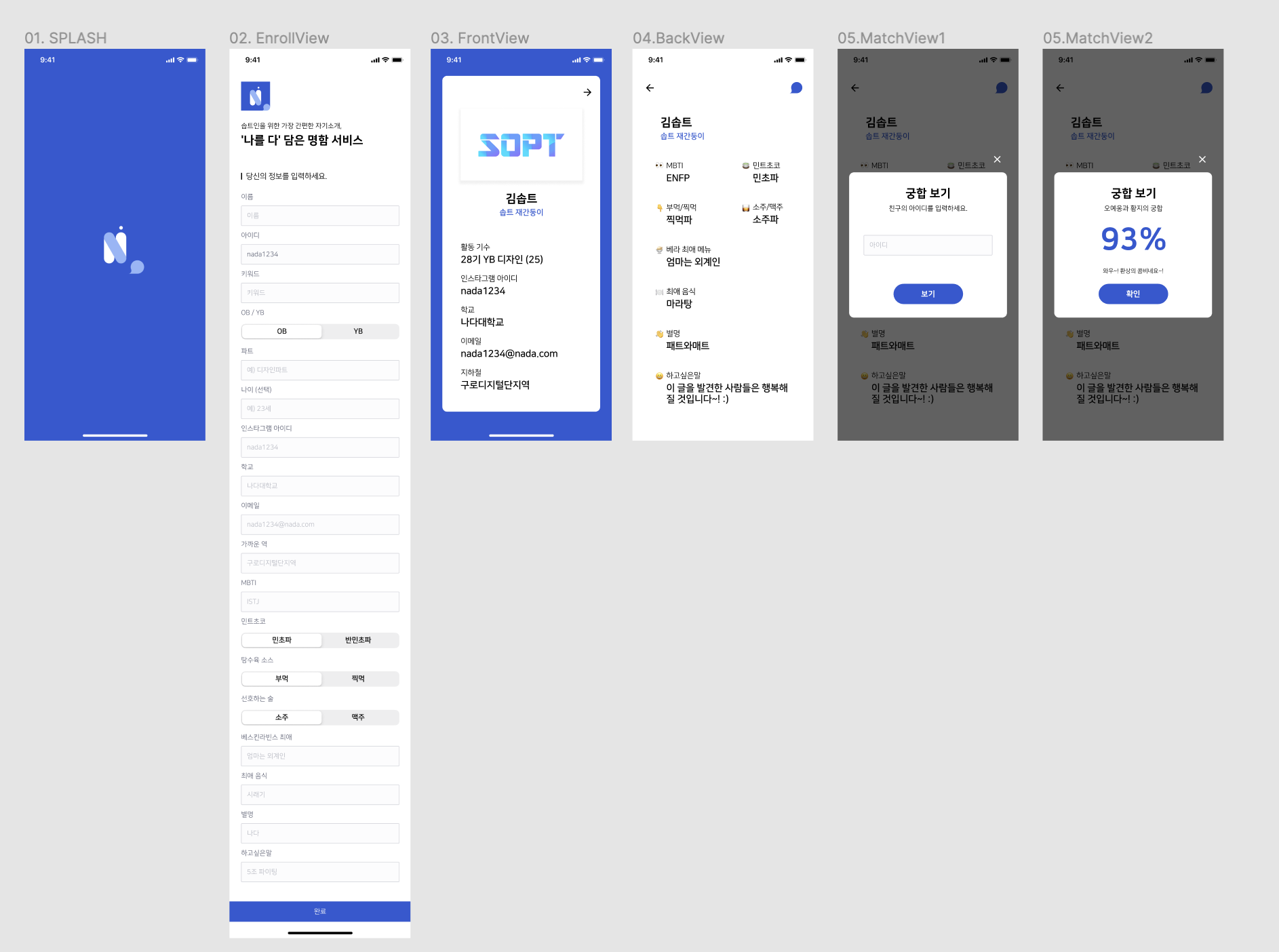 서비스에는 명함 내용을 처음 등록하고, 명함의 앞면, 뒷면, 재미를 주기 위한 궁합, 다른 사람에게 공유할 수 있도록 하는 기능까지 무려 6~7개의 달하는 뷰가 필요할 것 같았다.