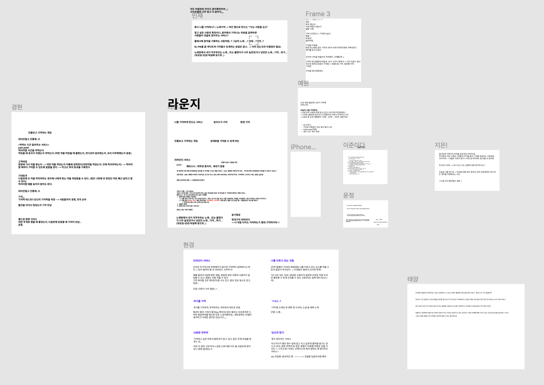 분리수거를 알려주는 서비스, 멸종 동물을 기억하게 만드는 서비스, 인물퀴즈 게임, 노래방 애창곡 기록 서비스, 향수 기억, 잊고 싶은 기억 등 정말 많은 아이디어가 나왔다.