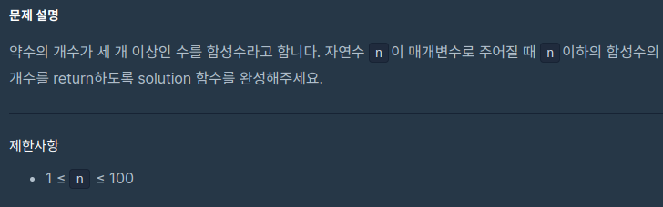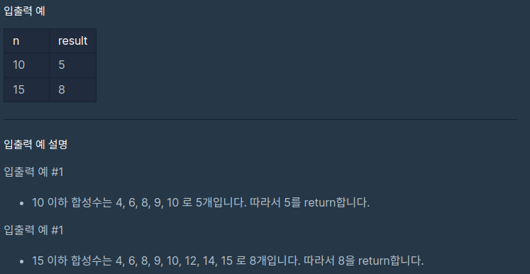 자연수 n이 주어질 때, n 이하의 합성수 개수를 반환하라는 문제이다.