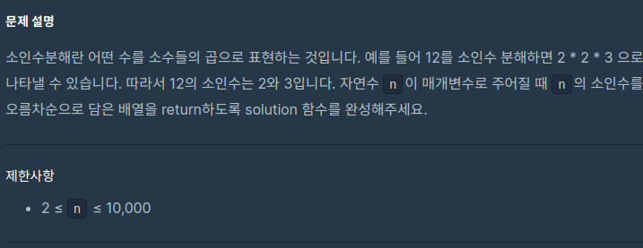즉, 소인수로 판별되기 위해서는 해당 수와 나누어 떨어지는 조건 1과 소수인지 조건 2를 모두 만족해야 한다는 것이다.