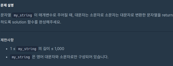 문자열이 매개변수로 주어질 때, 대문자는 소문자로, 소문자는 대문자로 변환한 문자열을 반환하라는 문제이다.