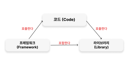 이처럼, 라이브러리(Library)는 개발자가 능동적으로 코드를 짜다가, 필요할 때마다 호출하면서 사용하는 것이다.
