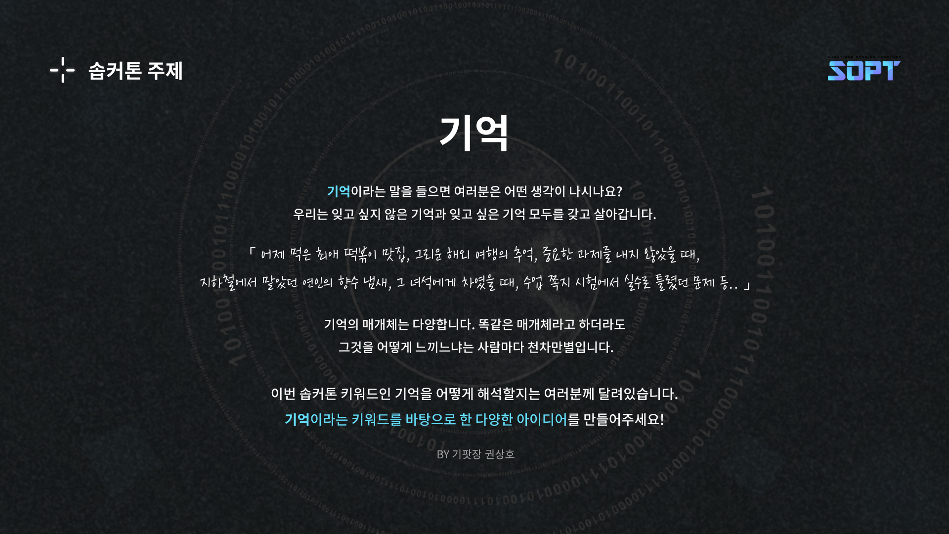 이번 솝커톤의 주제는 '기억'이었다.