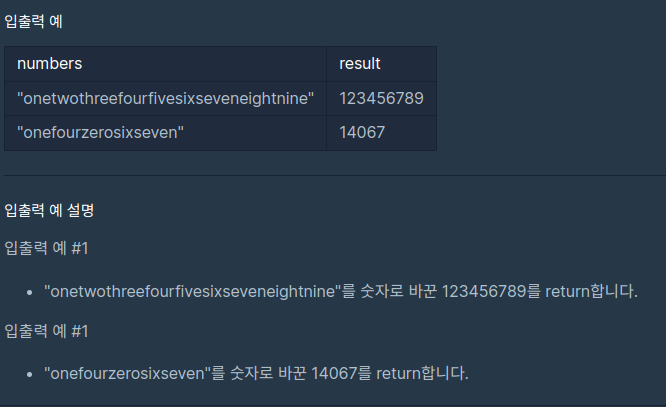 영어로 표시되어 있는 숫자를 수로 바꾸라는 문제이다. (예시: "onefourzerosixseven" -> 14067)