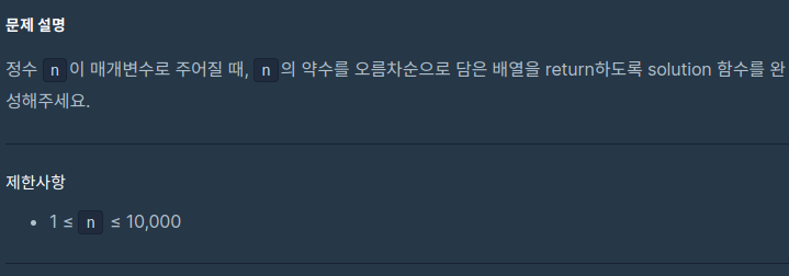 주어진 정수의 약수를 오름차순으로 담은 배열을 구하라는 문제이다.