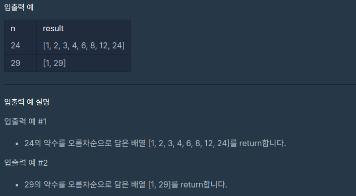 주어진 정수의 약수를 오름차순으로 담은 배열을 구하라는 문제이다.