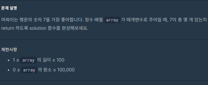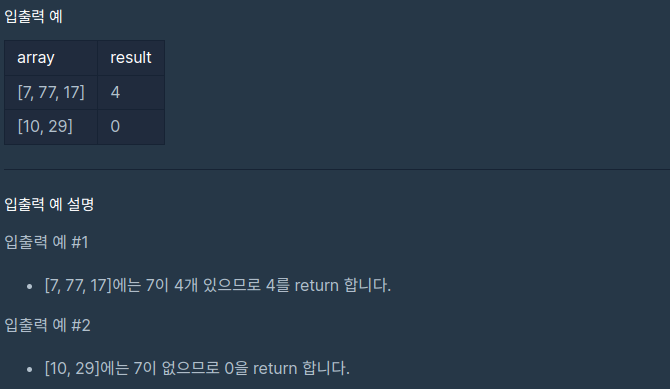 정수 배열이 주어질 때, 배열 안에 7이 총 몇 개 있는지 구하라는 문제이다.