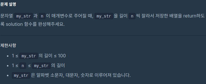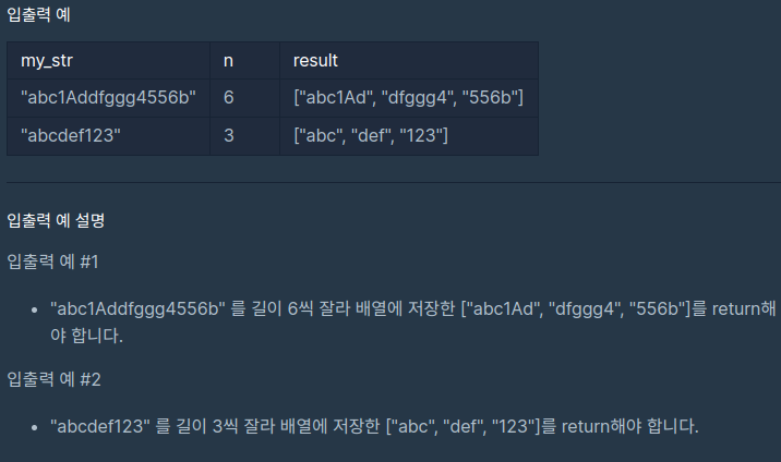 주어진 문자열을 주어진 정수만큼 잘라서 저장한 배열을 반환하라는 문제이다.