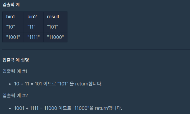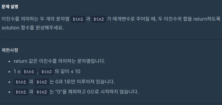 단, 결괏값도 이진수를 의미하는 문자열로 나타내야 한다.