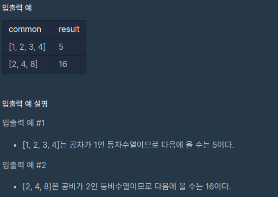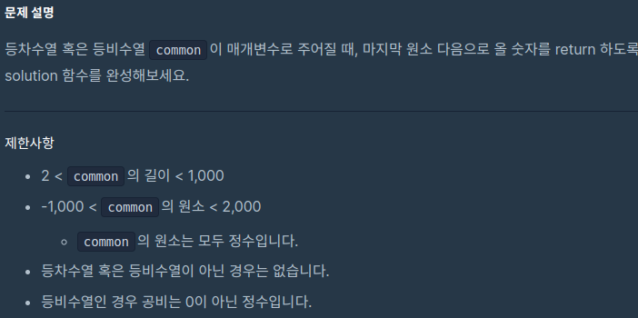 (common 배열의 길이가 3 이상이라는 조건이 있음) -> 마지막 원소의 값 + 공차 = 최종 반환 값
