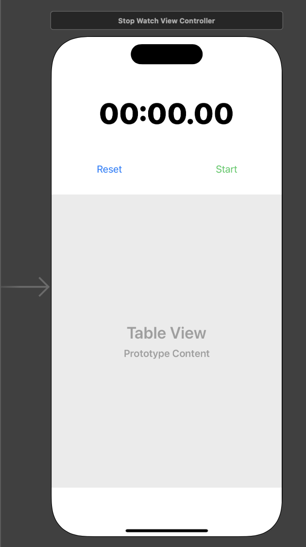 아래 부분에는 랩 타임을 순서대로 표출해 줄 stopWatchTableView를 추가해 줬다.