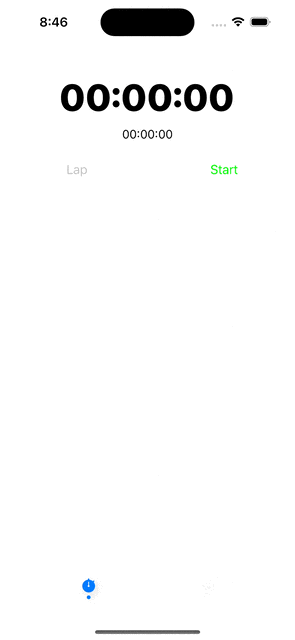 3. Lap 버튼을 누르면 아래 테이블 뷰에 Lap 타임이 순서대로 추가돼야 한다.