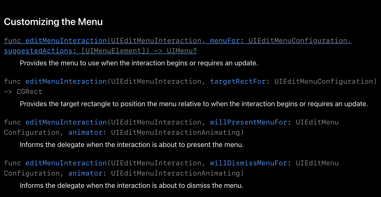 오잉??? iOS 16부터는 UIMenuController를 대신해서 UIEditMenuInteraction이라는 새로운 기능을 지원한다는 내용이었다.