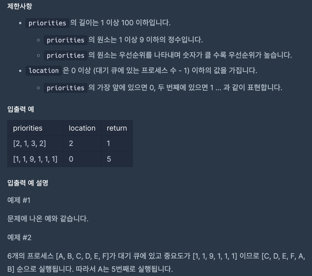 queue = sorted(priorities) # 우선순위를 꺼내기 위해 정렬된 priorities 리스트