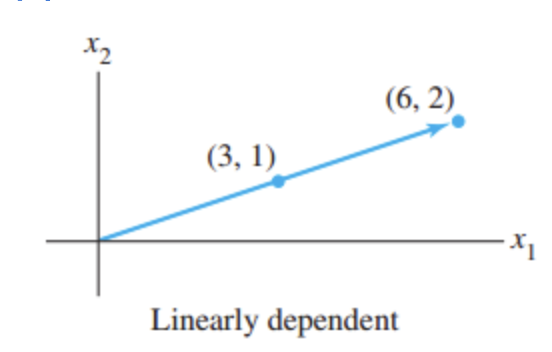 n차원의 공간에서 벡터들의 집합 {v1, v2..., vp}이 있을 경우, p가 n보다 크다면 (각각의 벡터의 요소 개수보다 벡터의 개수가 더 많다면 = 방정식의 개수보다 변수의 개수가 더 많다면), 위 벡터들은 반드시 linearly dependent하다.