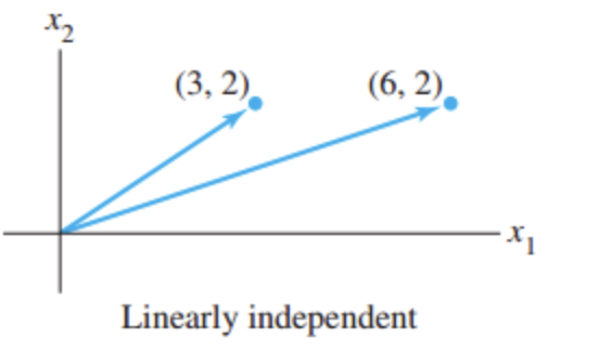 그럼 반대로, "두 vector의 집합에서 하나의 vector가 다른 vector의 scalar multiplication으로 표현되지 않는 경우"에는 linearly independent 하다고 해석할 수 있는 것이다.