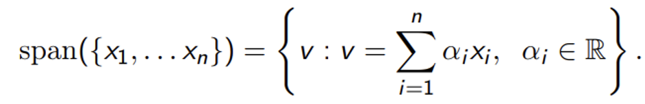 벡터 {x1, x2, x3, x4...., xn}의 Span은 {x1, x2, x3, x4...., xn}들의 선형 결합(Linear Combination)으로 만들 수 있는 모든 경우가 된다.