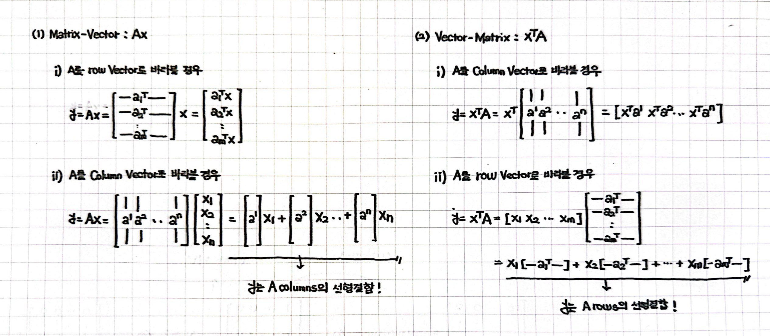 A를 Row Vector들의 집합으로 바라보면, row 벡터 a와 x의 내적(Inner Combination)으로 바라볼 수 있다.