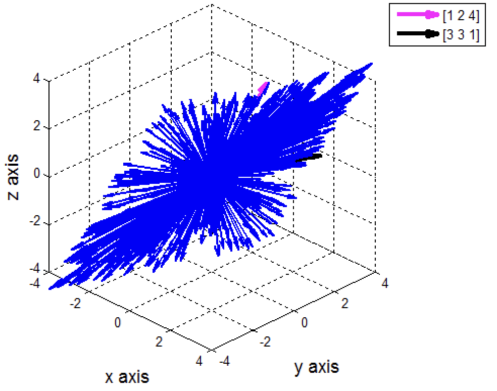 [1 2 4]가 v1, [3 3 1] v2 Column vector라고 했을 때, 선형 결합은 임의의 상수를 곱한 c1v1 + c1v2와 같은 형태로 진행할 수 있겠다.