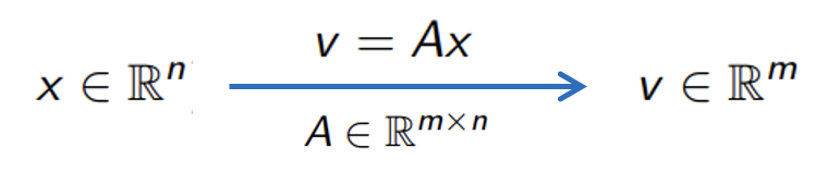 n차원 벡터 x를 m x n size의 matrix A에 linear하게 mapping하여 m차원의 벡터 v로 변환(transformation)하는 것은 Matrix Transform이라고 부른다.