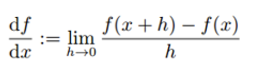일반적으로 f(x) 위에 있는 h가 x로 가까워져 갈 때의, y축 변화량(f(x+h)-f(x)) 나누기 x축 변화량(h)으로 미분값을 정의한다.
