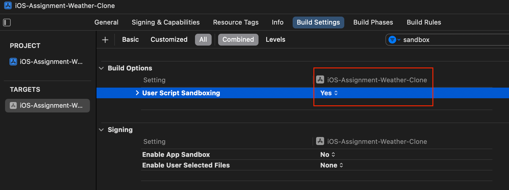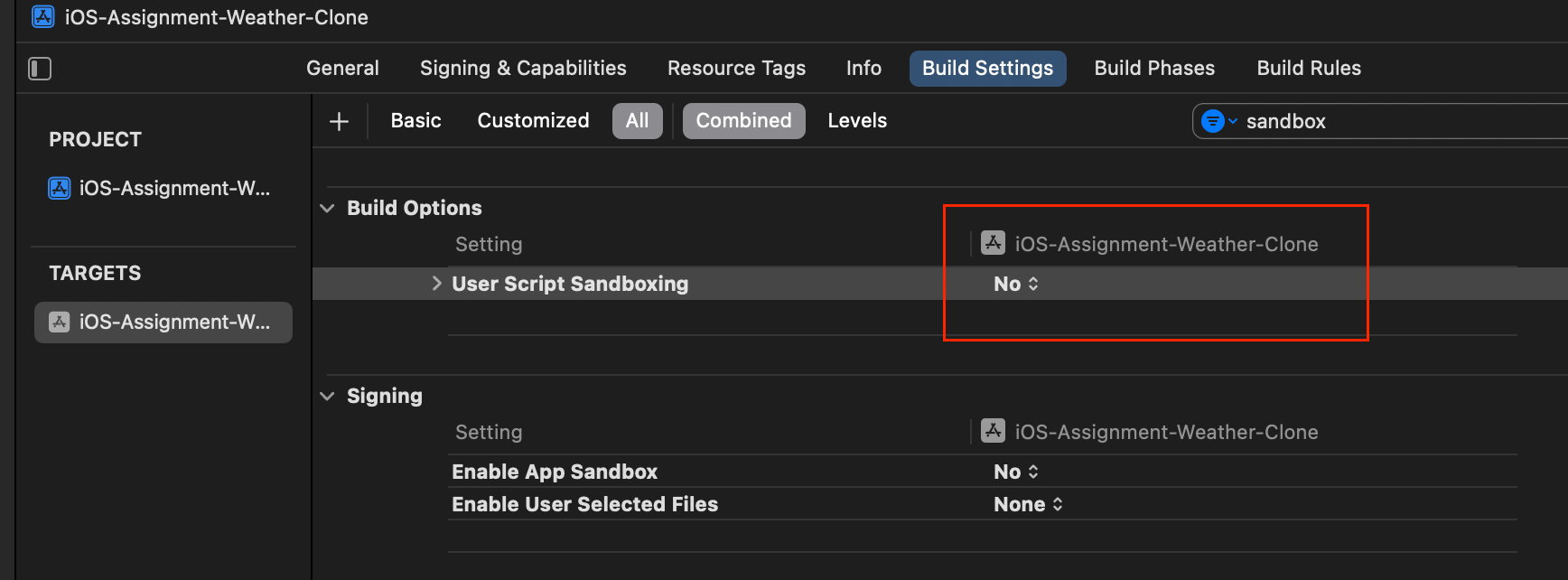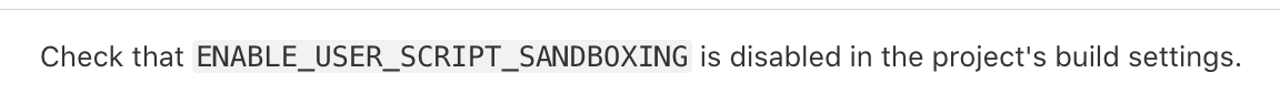 즉, Xcode 15부터 업데이트된 sandbox의 설정을 disable 해줘야