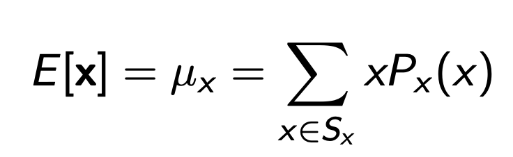 이 Random Variable에 대한 Expected Value(E[x], μx)는 0*1/4 + 1*1/2 + 2*1/4의 식으로 구해줄 수 있다는 것이다.