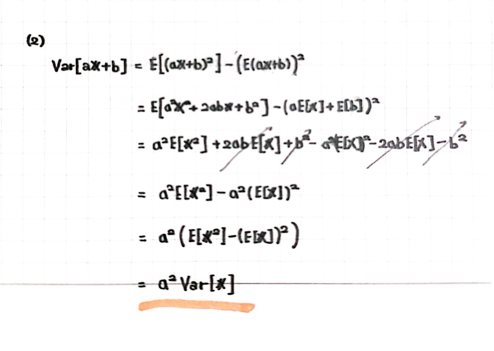 (2) 공식 같은 경우는 Random Variable에 대해 곱해주는 경우에 대해 제곱만큼 분산이 늘어난다는 내용이다.
