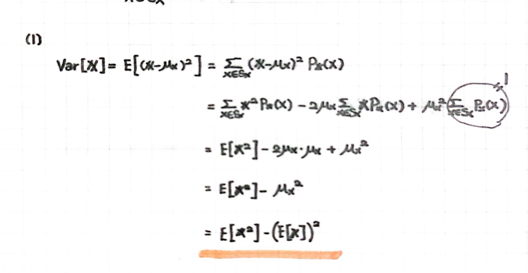Random Variable 각각을 제곱한 값들의 평균과 Random Variable의 Expected Value를 제곱한 값의 차로 Variance를 구하는 방식이다.