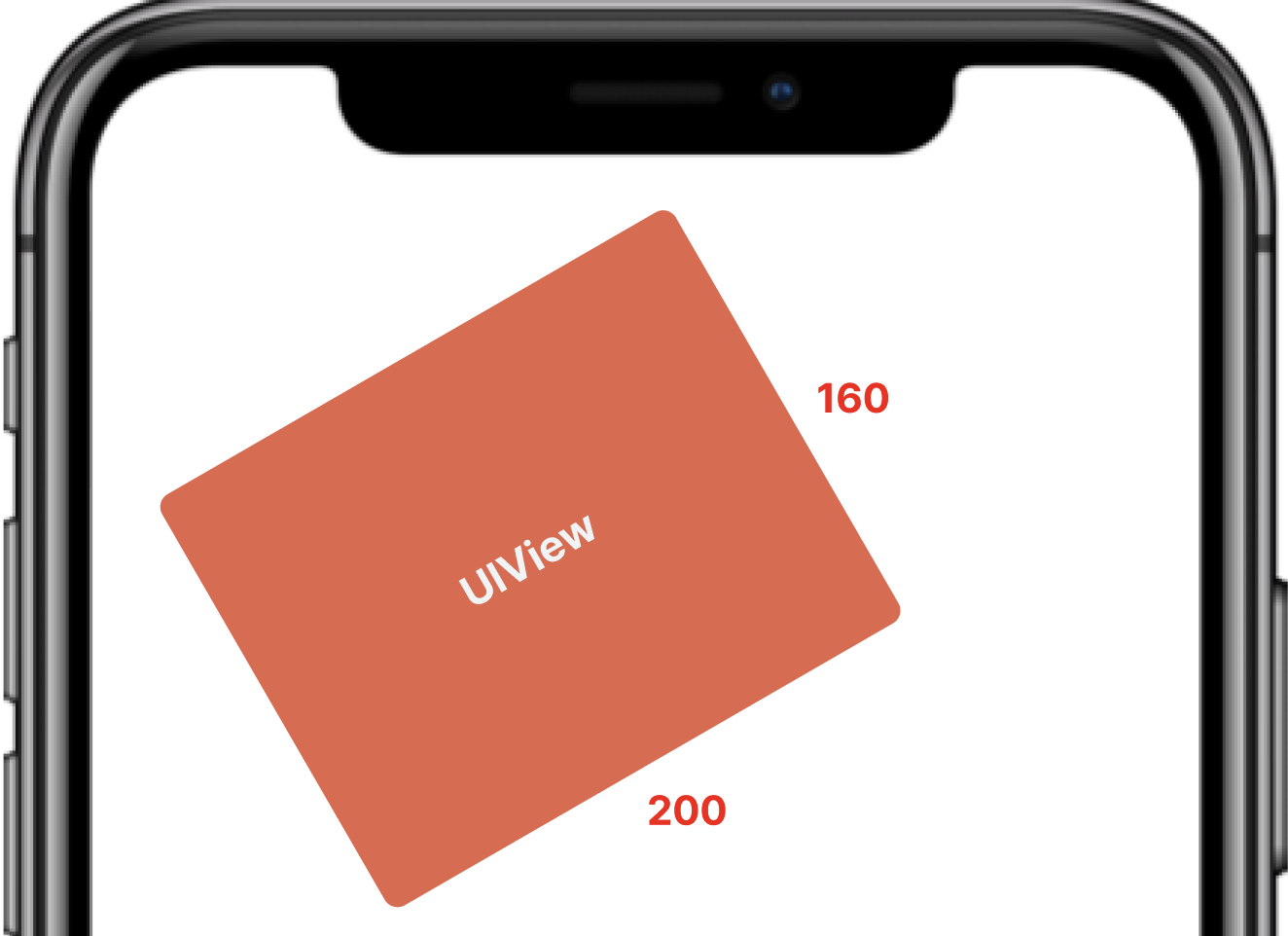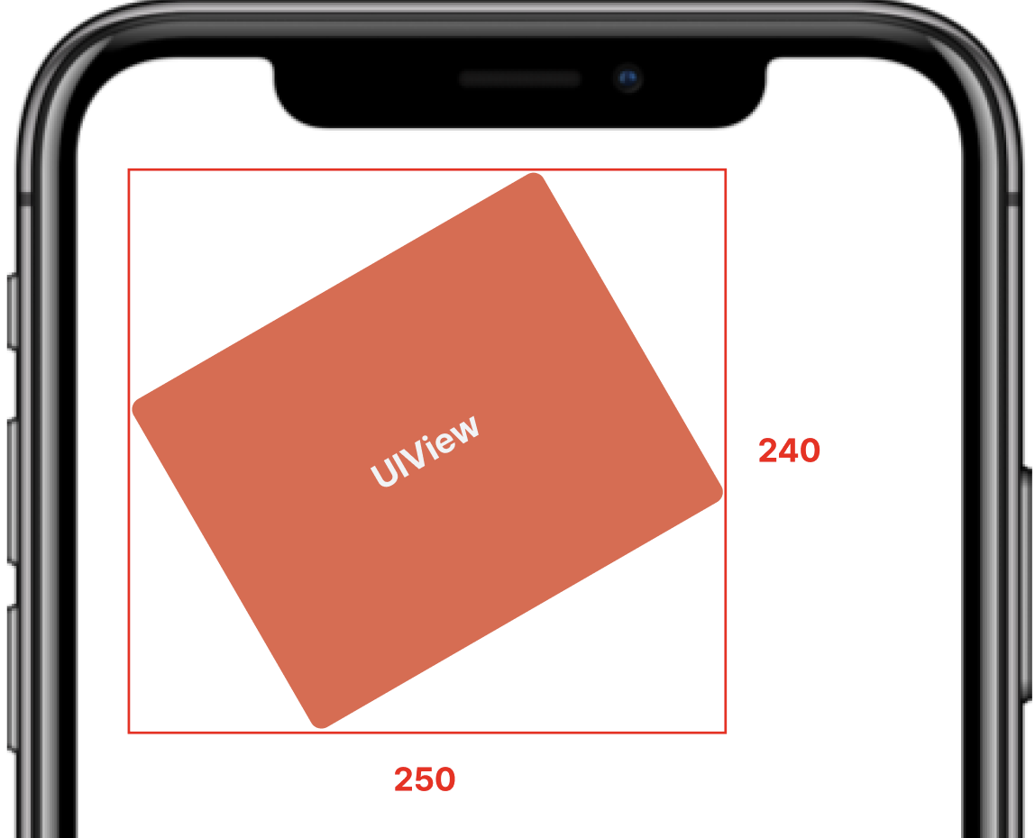 하지만, 만약 View를 rotateAngle 시킨다고 했을 때, frame은 양 끝 외곽 점(= 뷰를 감싸는 전체 공간)을 기준으로 size가 잡히고, bounds는 기존 view의 size값과 동일하게 잡히게 된다.