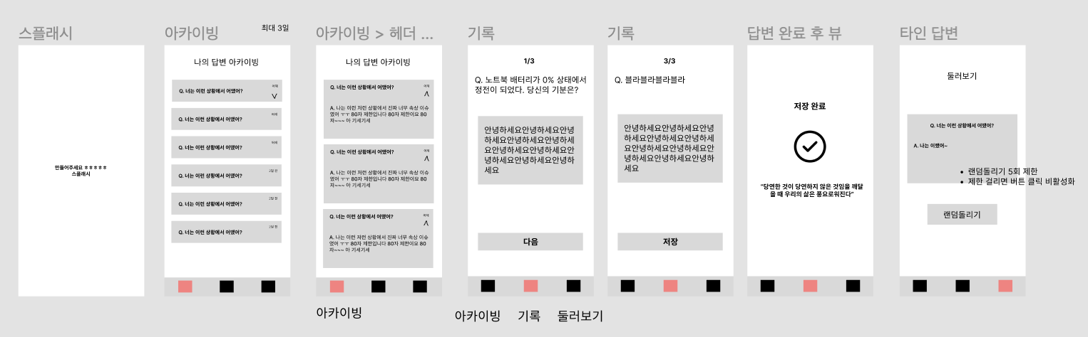 기획 팀원과는 1차 와이어프레임이 나왔을 때 주로 이야기를 나누었다.