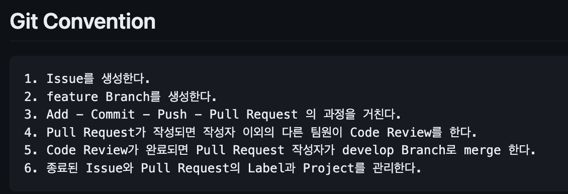 깃 컨벤션(flow 전략과 commit message), 프로젝트 폴더링 컨벤션, 코딩 컨벤션과 같은 협업 규칙을 정했다.