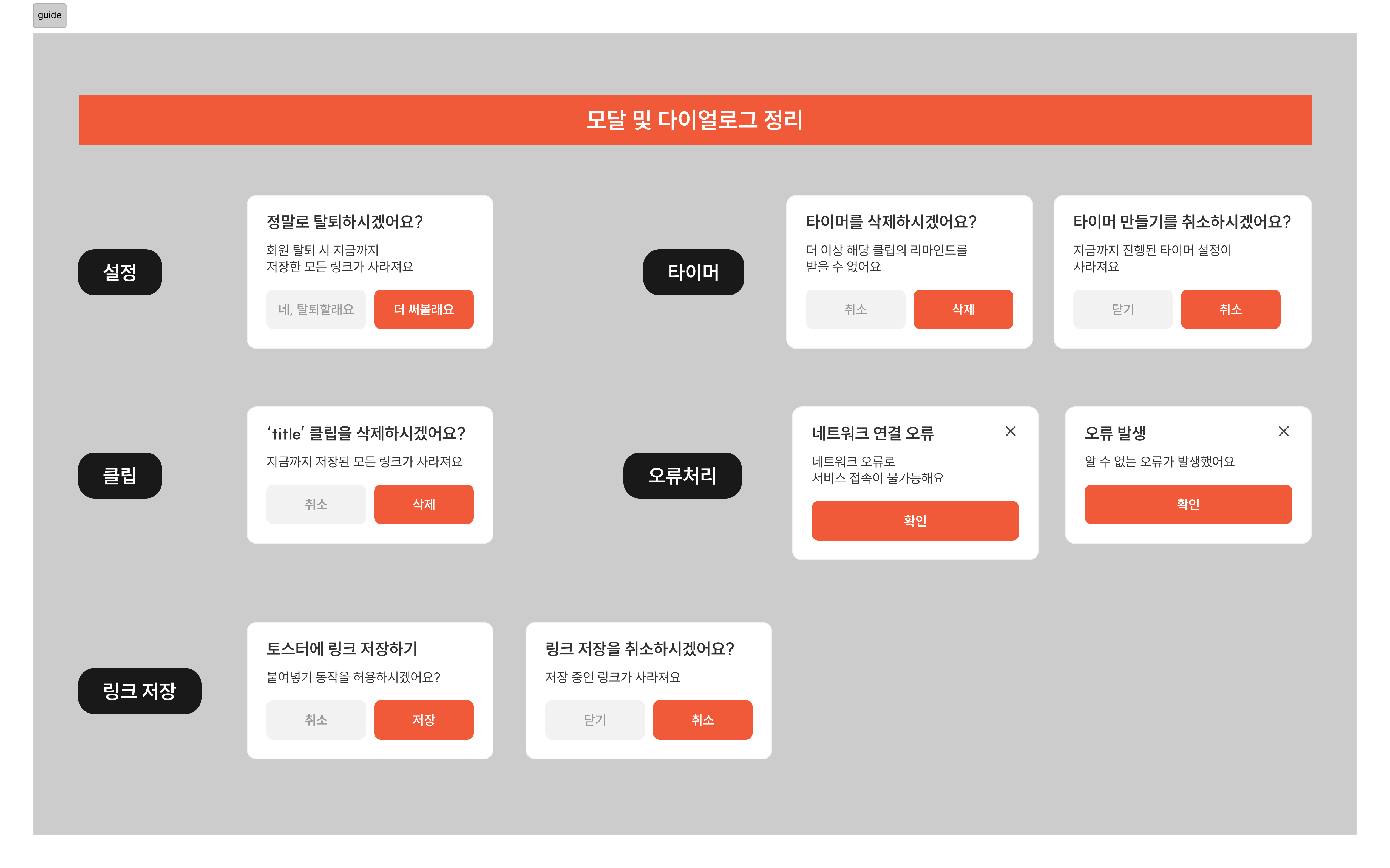 지난번 토스트 메시지 때와 마찬가지로 앱 내에서 사용하는 알럿창을 디자이너 선생님들이 모두 정리해주셨다.