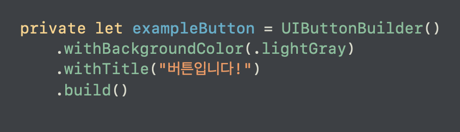 아래는 UIButton 객체를 만들 때, Builder 클래스를 활용해서 생성하는 예제이다.