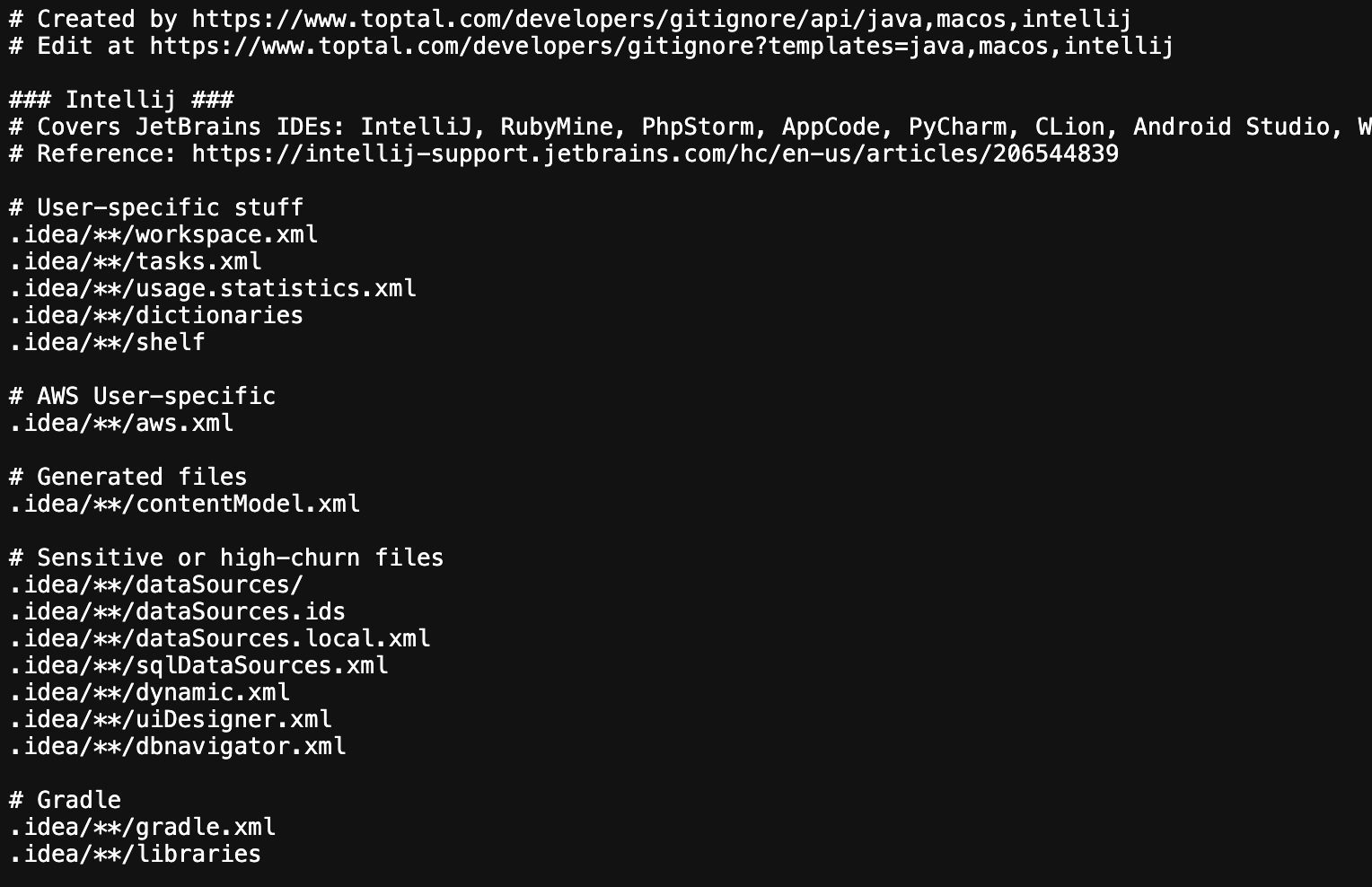 그래도 직접 .gitignore 파일을 수정해야하는 경우가 생길 수 있으니 명령어가 어떤걸 의미하는지도 간략하게 알아보고 글을 마무리해보자.