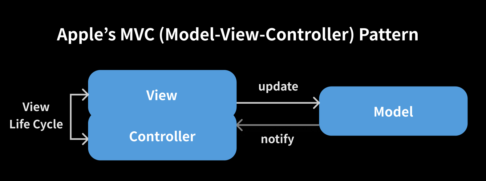 물론 엄밀히 말하면, ViewController 안에서도 View Life Cycle을 가지고 View와 Controller 사이의 인터렉션이 이루어지는 구조이긴 하다.