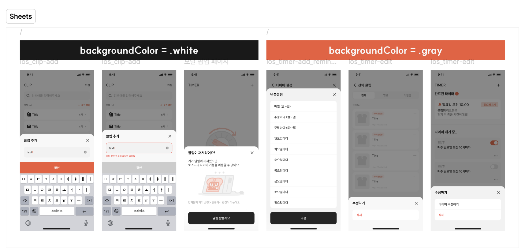 - Sheets view의 backgroundColor에 따라 white 타입과 gray 타입으로 나눌 수 있다.