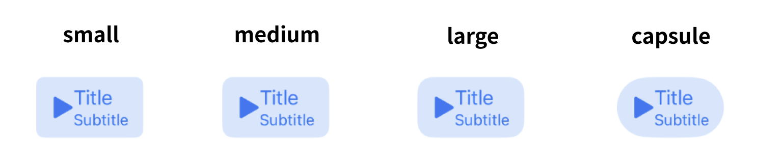 마찬가지로 small, medium, large, capsule 총 4가지의 모서리 스타일을 지원하고 있으니 설정하면 되겠다. (물론 직접 layer에 들어가서 cornerRadius를 지정해도 상관없다!)