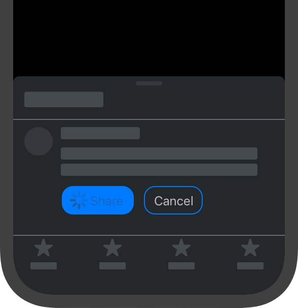 - 버튼 클릭 후 작업이 즉시 완료되지 않는 경우에는 애니메이션(= 아래와 같은 로딩 화면)이나 label의 변화(공유 -> 공유중)를 통한 피드백을 사용자에게 적절히 제공할 것.