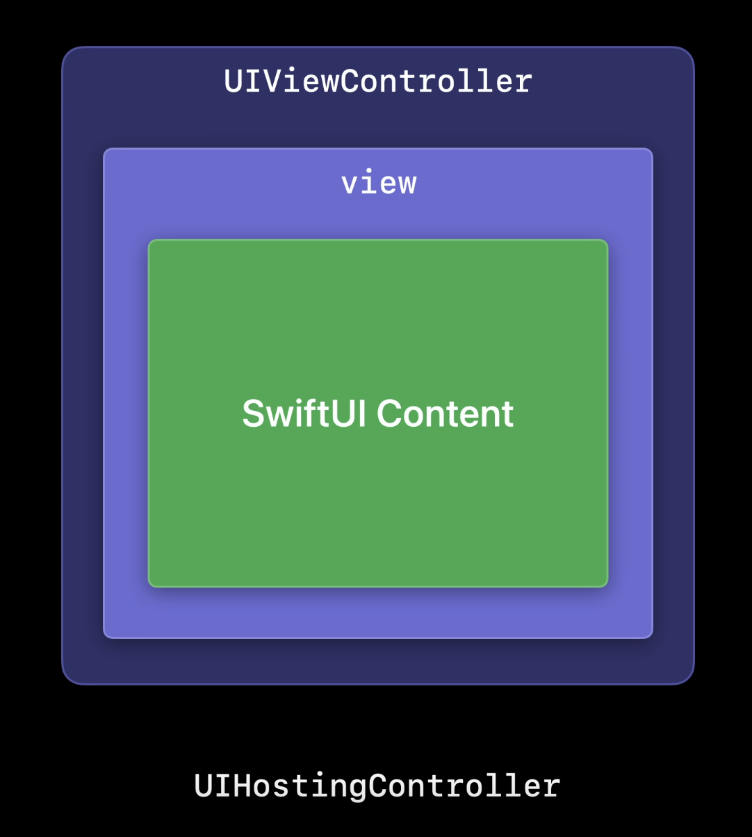 "ViewController(= HostingController)가 갖고 있는 UIView 계층 안에 초기화 시에 rootView로 지정된 SwiftUI Content를 넣어주겠다는 것"으로 볼 수 있다!