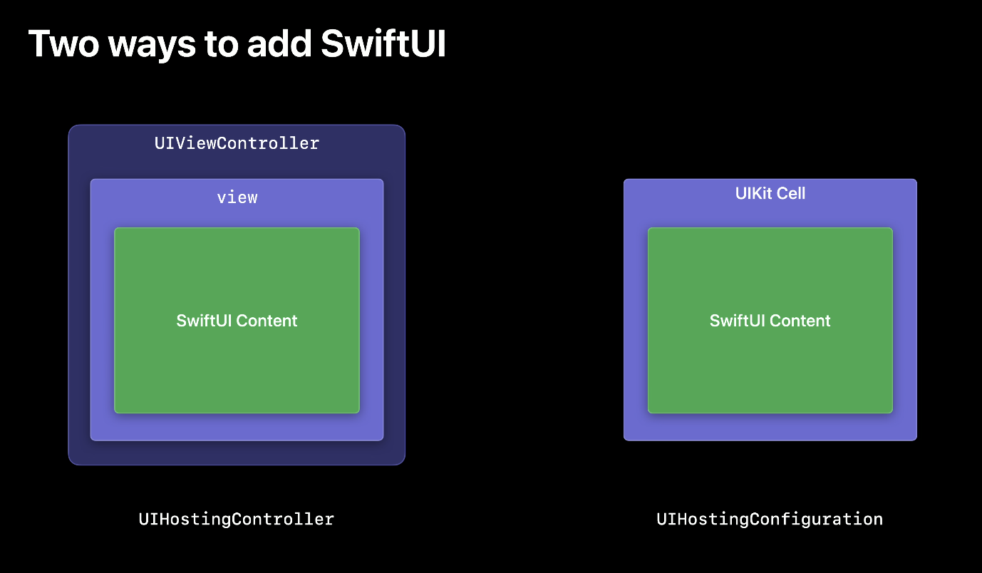 UIKit 프로젝트 내에서 HostingController는 두 가지 방법으로 사용할 수 있다.