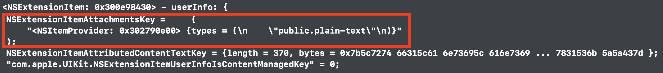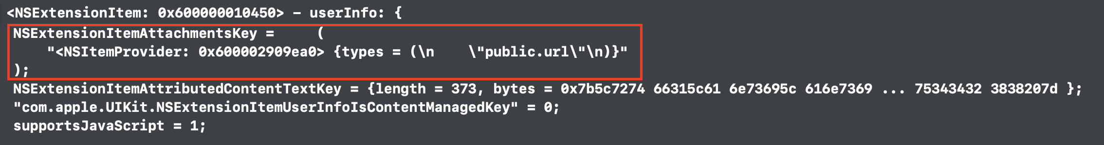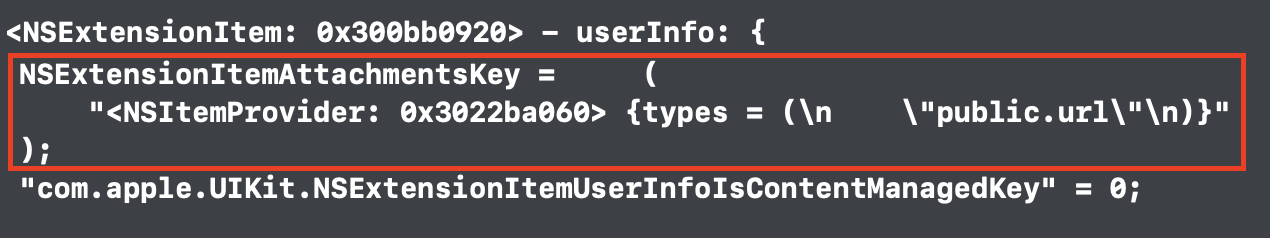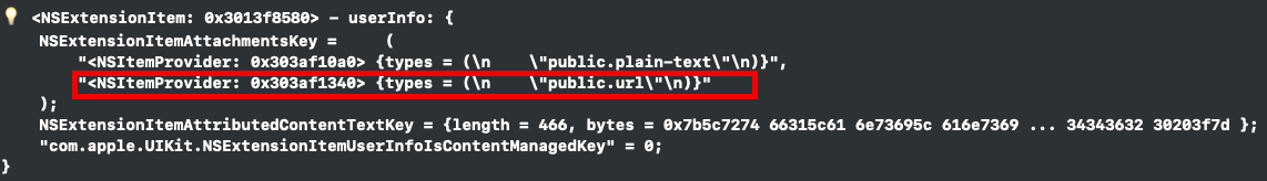 3️⃣ 각 외부 서비스별 NSExtensionItem의 자료형 이해하기