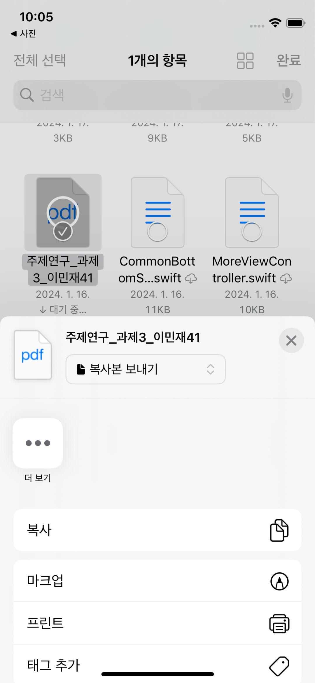 추가로 버튼 클릭 시에 나오는 바텀시트 화면을 Share Sheet라고 부른다.