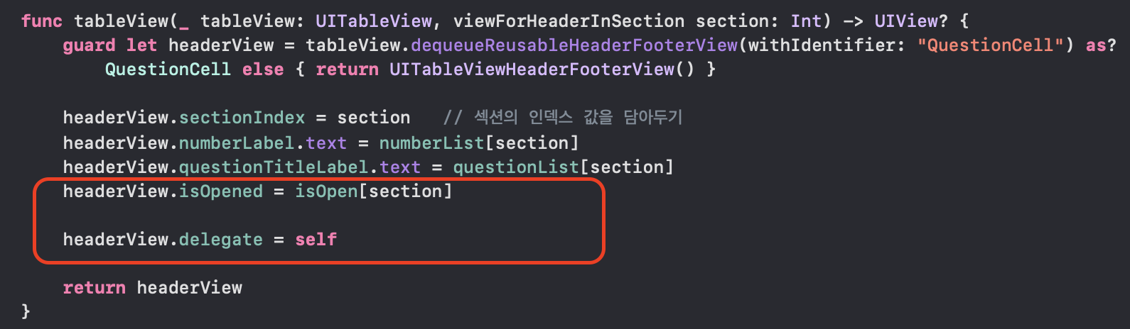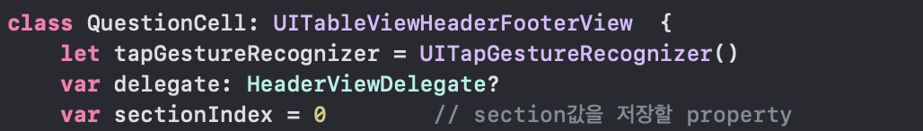 Section header를 구현한 아래 QuestionCell 부분을 더 자세하게 살펴보자.