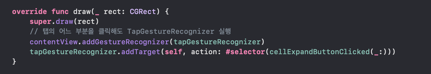 UITabGestureRecognizer를 추가해준 것은 사용자가 이 뷰를 클릭했을 때, 동작을 할 수 있게 하기 위해서다.