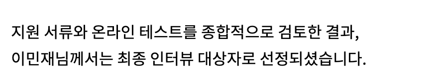 그러면 제출한 서류와 온라인 테스트를 종합적으로 검토해 - 최종 온라인 인터뷰 대상자 결과를 선정해서 메일로 알려줍니다.
